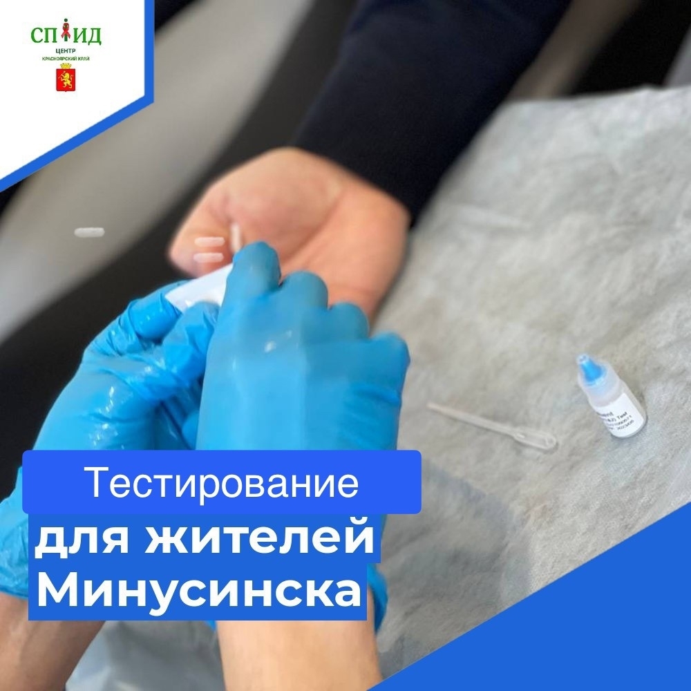КГАУЗ Краевой Центр СПИД совместно с КРООПГИ «Чистый взгляд» приглашают жителей и гостей города Минусинска 06 ноября 2025 года пройти бесплатное экспресс-тестирование на ВИЧ-инфекцию в КГБУЗ «Минусинская МБ» (поликлиника №2) по адресу: г. Минусинск, ул. Ванеева, д. 2, с 8:00 до 12:00 часов.